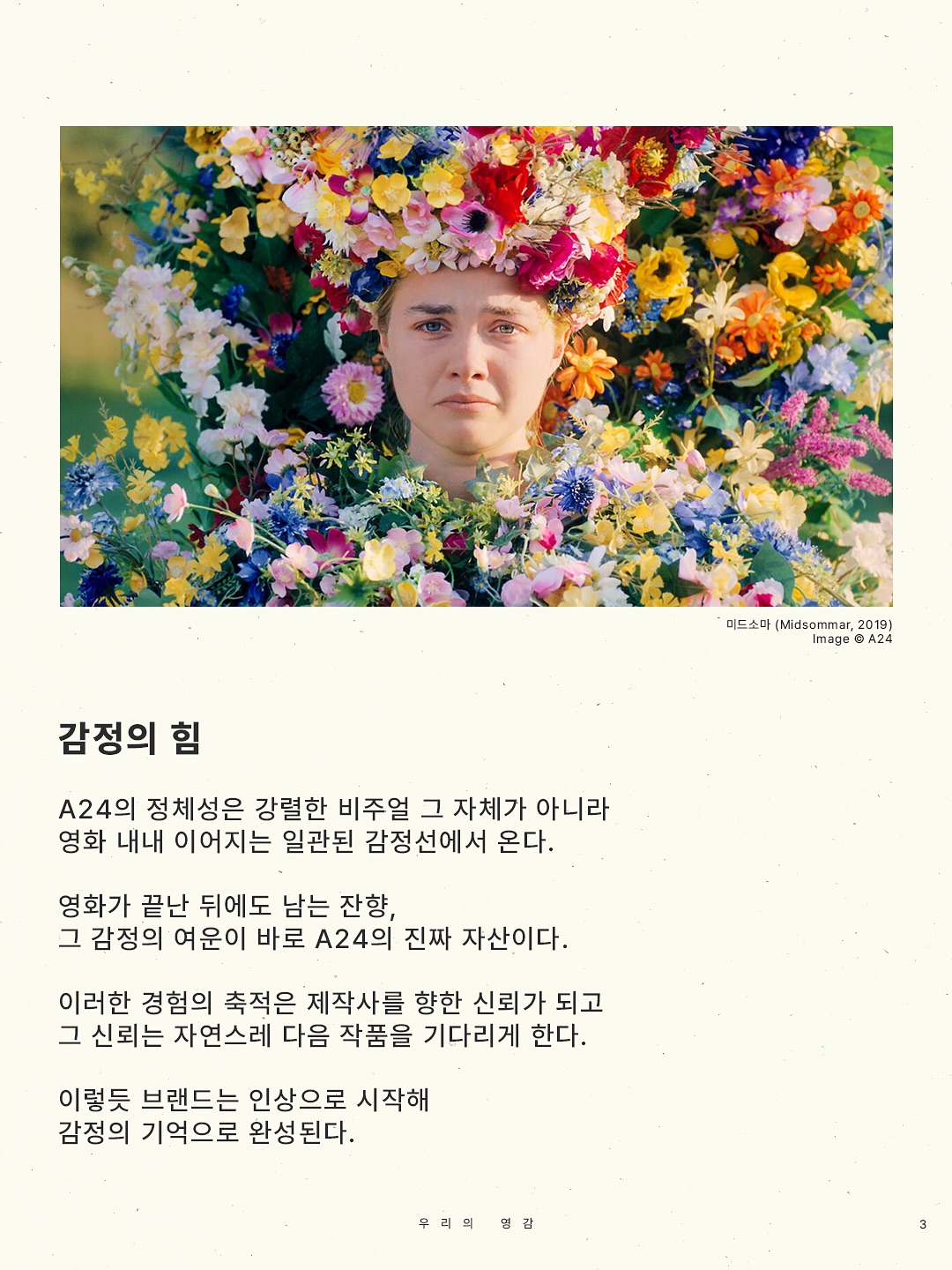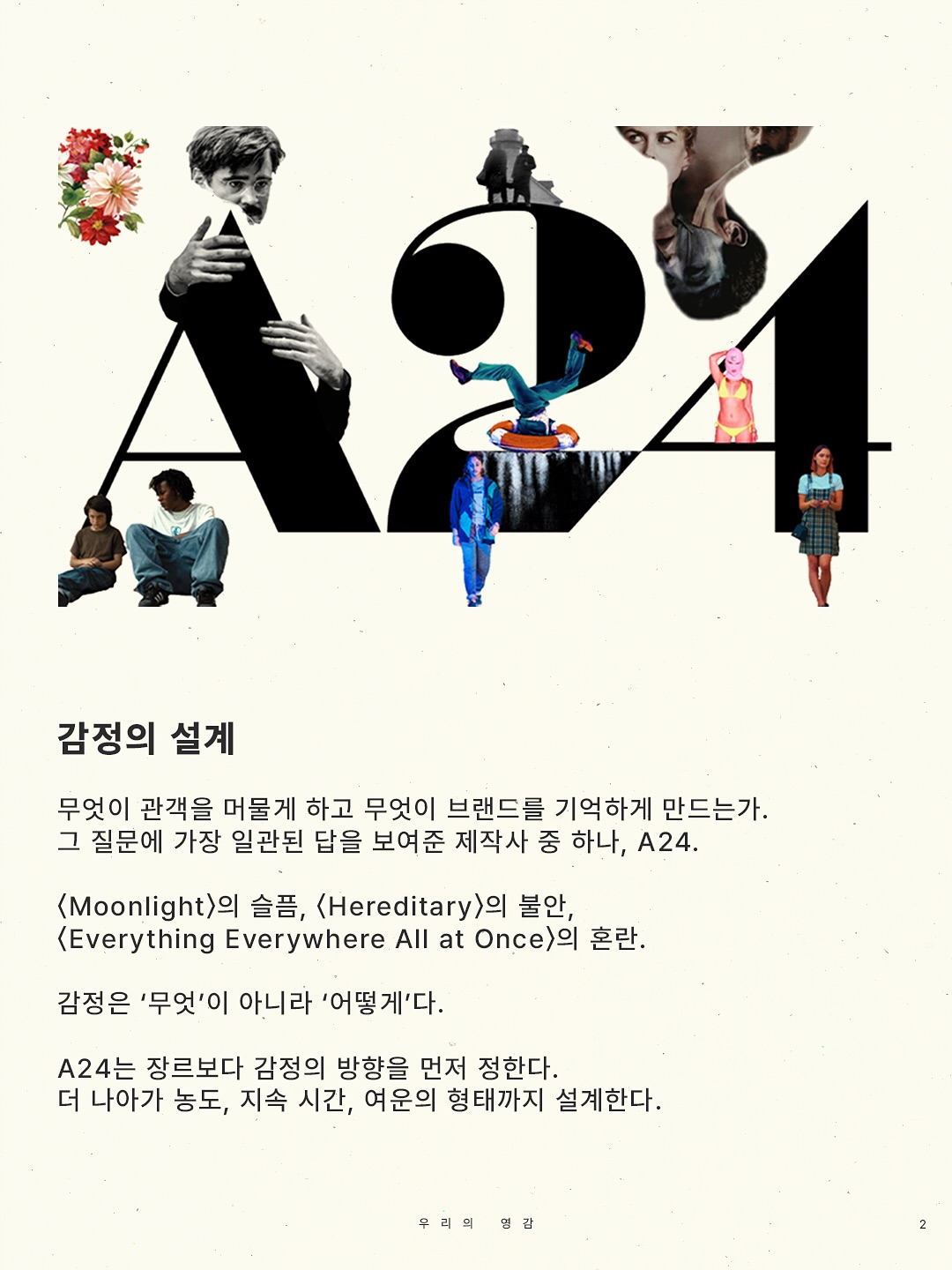 A24는 장르보다 감정의 방향을 먼저 정한다. 더 나아가 농도, 지속 시간, 여운의 형태까지 설계한다.