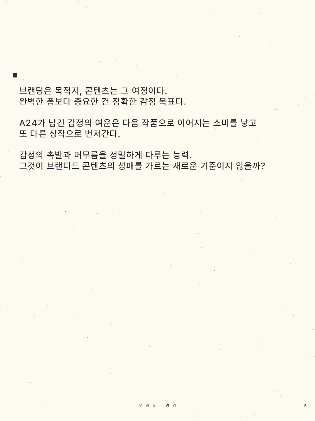 무엇이 관객을 머물게 하고 무엇이 브랜드를 기억하게 만드는가. 그 질문에 가장 일관된 답을 보여준 제작사 중 하나, A24.