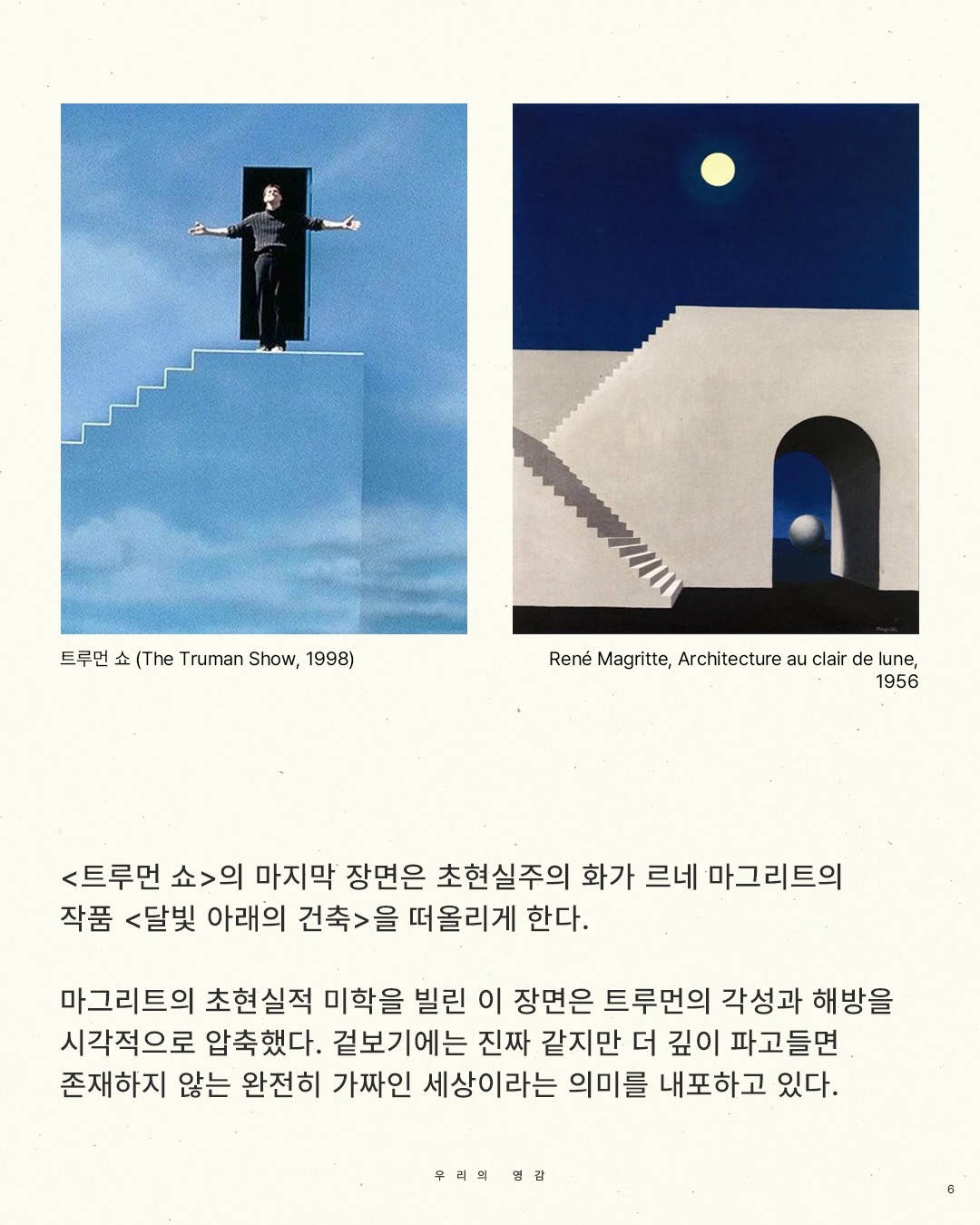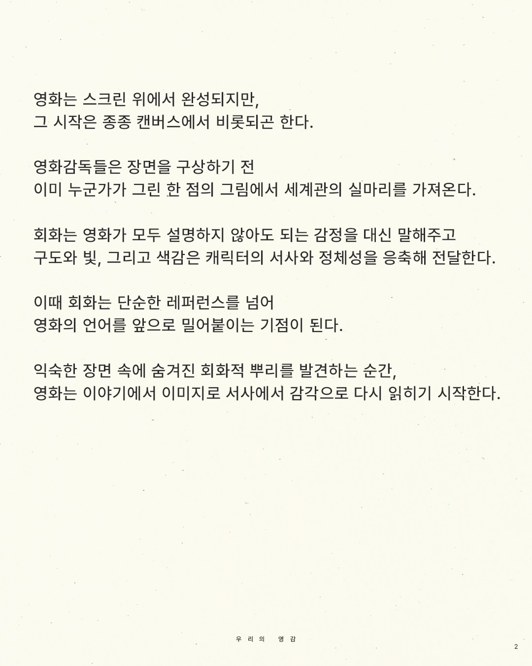 익숙한 장면 속에 숨겨진 회화적 뿌리를 발견하는 순간, 영화는 이야기에서 이미지로 서사에서 감각으로 다시 읽히기 시작한다.